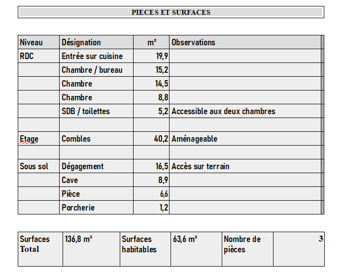 Les combles sont amènageables et profite d’un accès indépendant, la toiture est reprise sur une partie à neuf, et l’autre reste à remanier ( tuille ardoise ).
