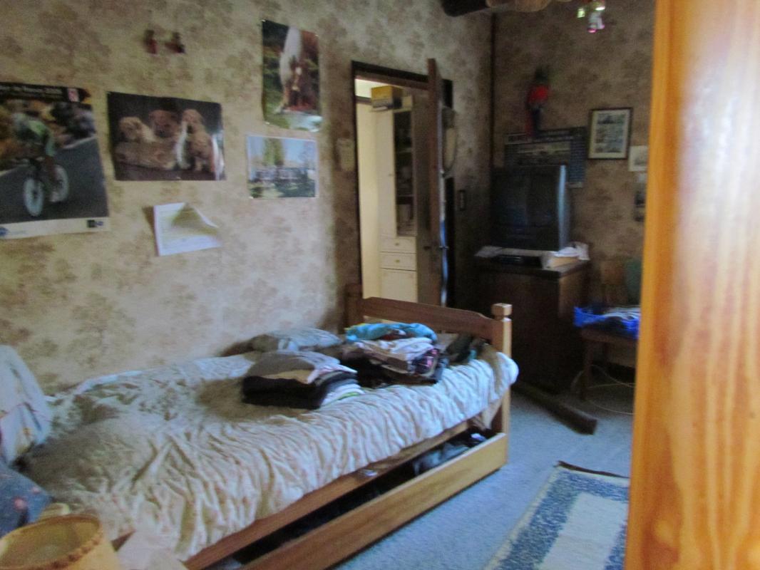 Elle se compose d’une entrée sur cuisine, trois chambres ( dont deux avec accès direct à la SBD ), une salle de bain, toilettes, combles, cave, et un terrain.