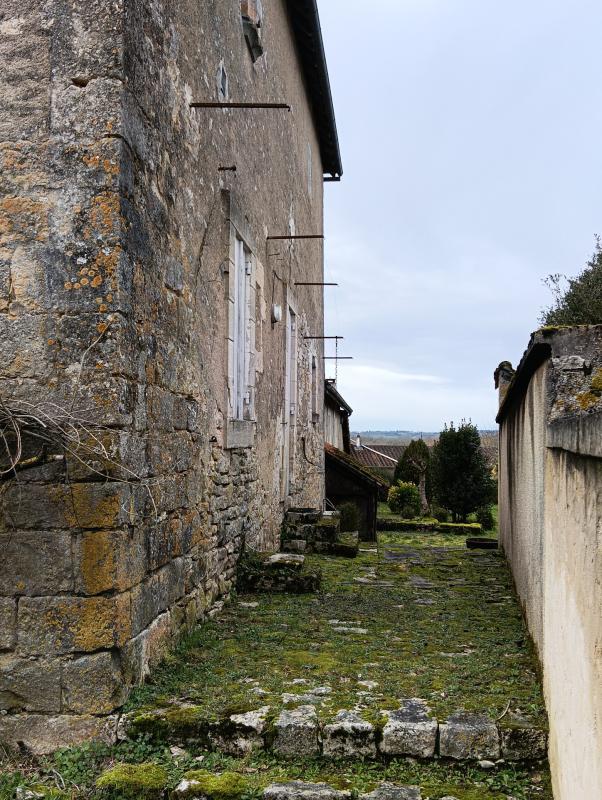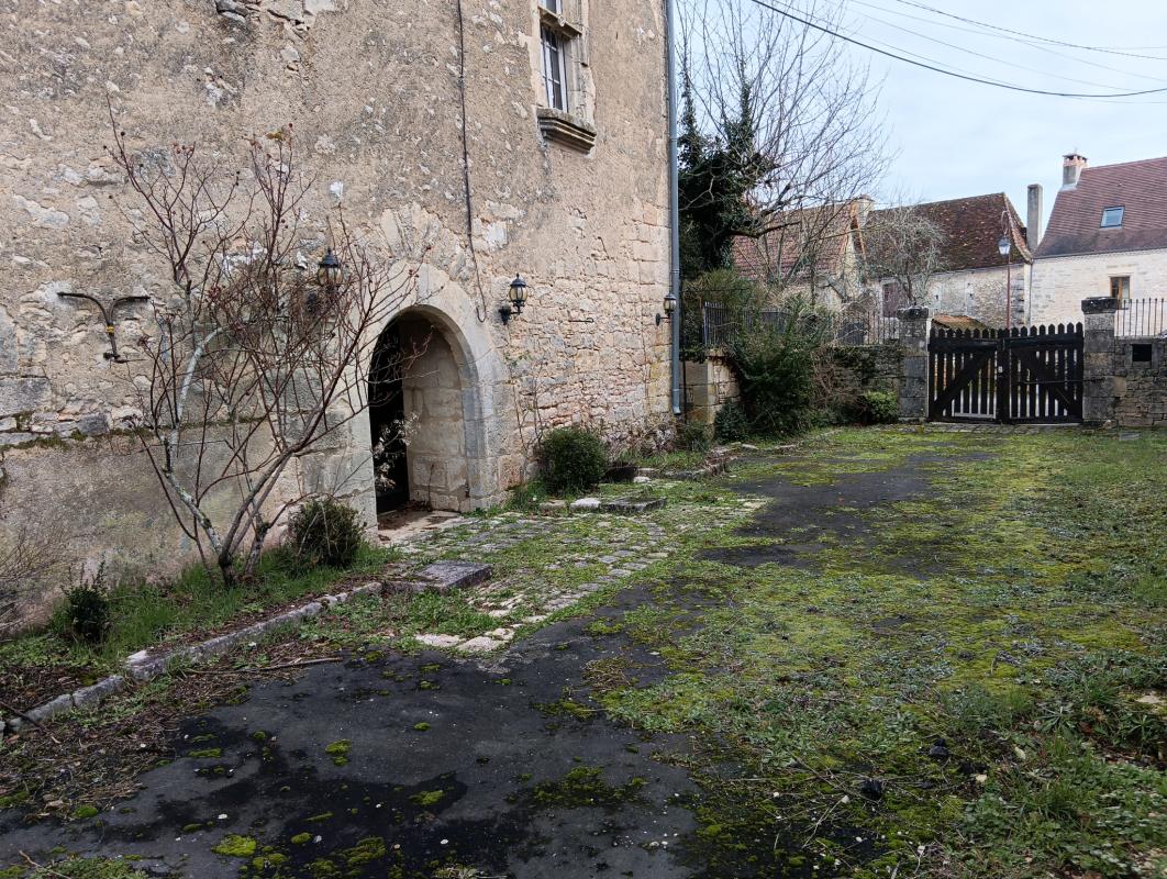 A l’extérieur on trouve une cour fermée pouvant accueillir deux à trois places de parking avec l’accès à un parc clos en forme de L entourant la bâtisse.