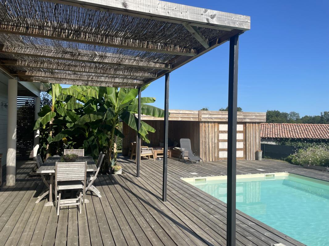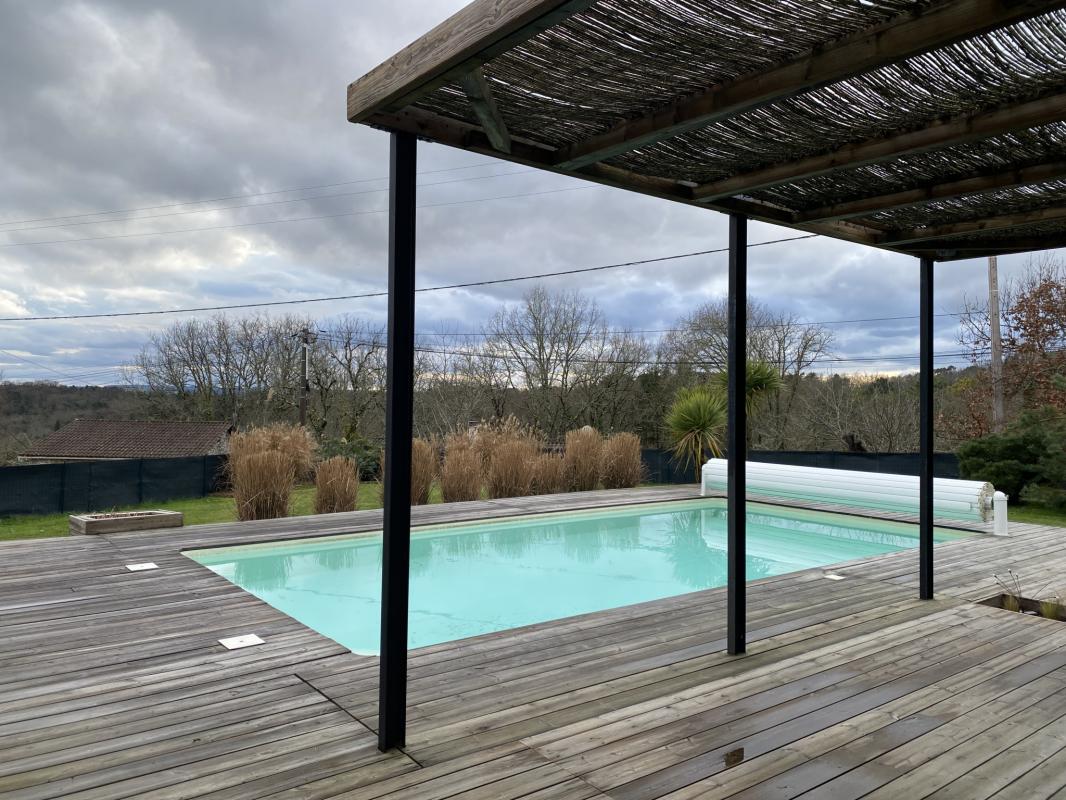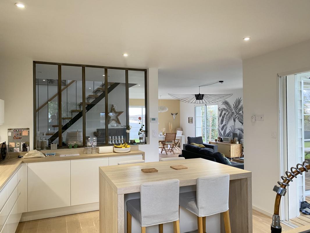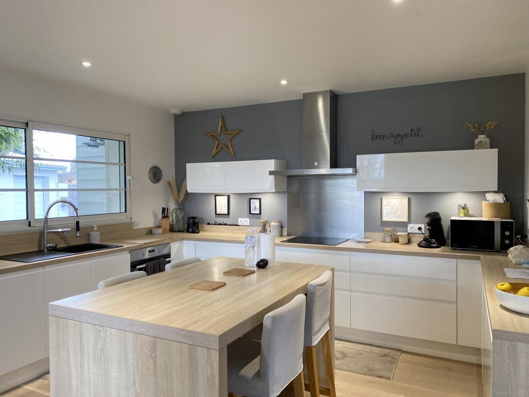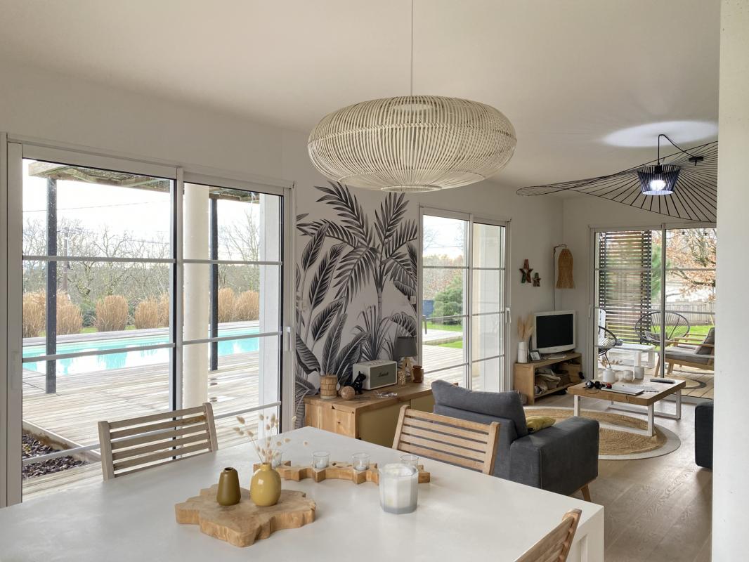 Située à Trélissac, à quelques minutes de Périgueux, cette maison contemporaine construite en 2017 offre un cadre de vie idéal. Avec ses prestations haut de gamme et ses matériaux de qualité, elle séduit par son architecture moderne et ses espaces lumineux. D’une surface habitable de 134 m2, elle comprend une vaste pièce de vie de 64 m2 avec cuisine ouverte et verrière, créant une belle fluidité entre l’intérieur et l’extérieur. La maison dispose de trois chambres, dont une suite parentale avec salle d’eau et WC séparé, ainsi qu’une salle d’eau et un WC indépendant avec lave-main. Vous apprécierez également la buanderie et les nombreux espaces de rangement. Un garage double de 51 m2 avec un atelier vient compléter l’ensemble, offrant un espace de stockage supplémentaire. À l’extérieur, un terrain soigneusement aménagé accueille une piscine chauffée au sel (8×4 m), parfaite pour profiter des journées ensoleillées, ainsi qu’une terrasse conviviale. Le parking enrobé permet de stationner plusieurs véhicules. Côté construction, la maison bénéficie de murs en briques collées avec bardage blanc, d’une toiture en tuiles émaillées blanches et d’une isolation performante en laine de verre. Pour le confort thermique, un plancher chauffant hydraulique alimenté par une pompe à chaleur Viessmann permet un réglage pièce par pièce, complété par un poêle à bois et un chauffe-eau électrique. Enfin, les équipements pratiques tels qu’un adoucisseur d’eau, une microstation d’épuration et une tondeuse autonome pour l’entretien du jardin viennent parfaire ce bien d’exception. En résumé, cette propriété offre un cadre paisible avec une vue dégagée, tout en restant à proximité des commodités et des infrastructures de Périgueux.