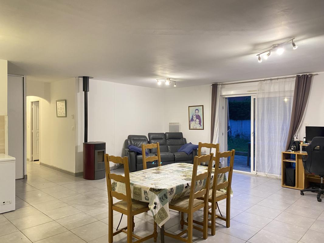 Dès l’entrée, vous serez séduit par la pièce de vie spacieuse et baignée de lumière, véritable coeur de la maison. Le séjour, agrémenté d’un poêle à granulés, crée une atmosphère chaleureuse, idéale pour les soirées d’hiver. De larges ouvertures laissent entrer la lumière naturelle et offrent un accès direct aux terrasses et au jardin.