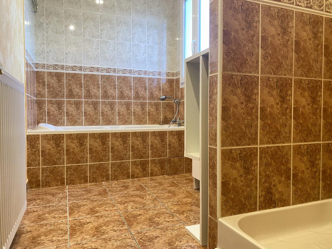 À l’étage, l’espace nuit se compose de trois chambres équipées de rangements intégrés, d’une salle de bains comprenant douche et baignoire, ainsi que d’un WC séparé.