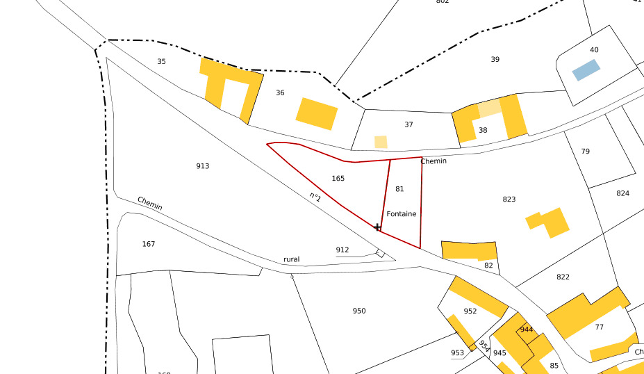 L’agence Pierimmo vous propose cette belle assiette foncière en forme triangulaire, bordées de mur en pierre avec la prèsence d’un puit.